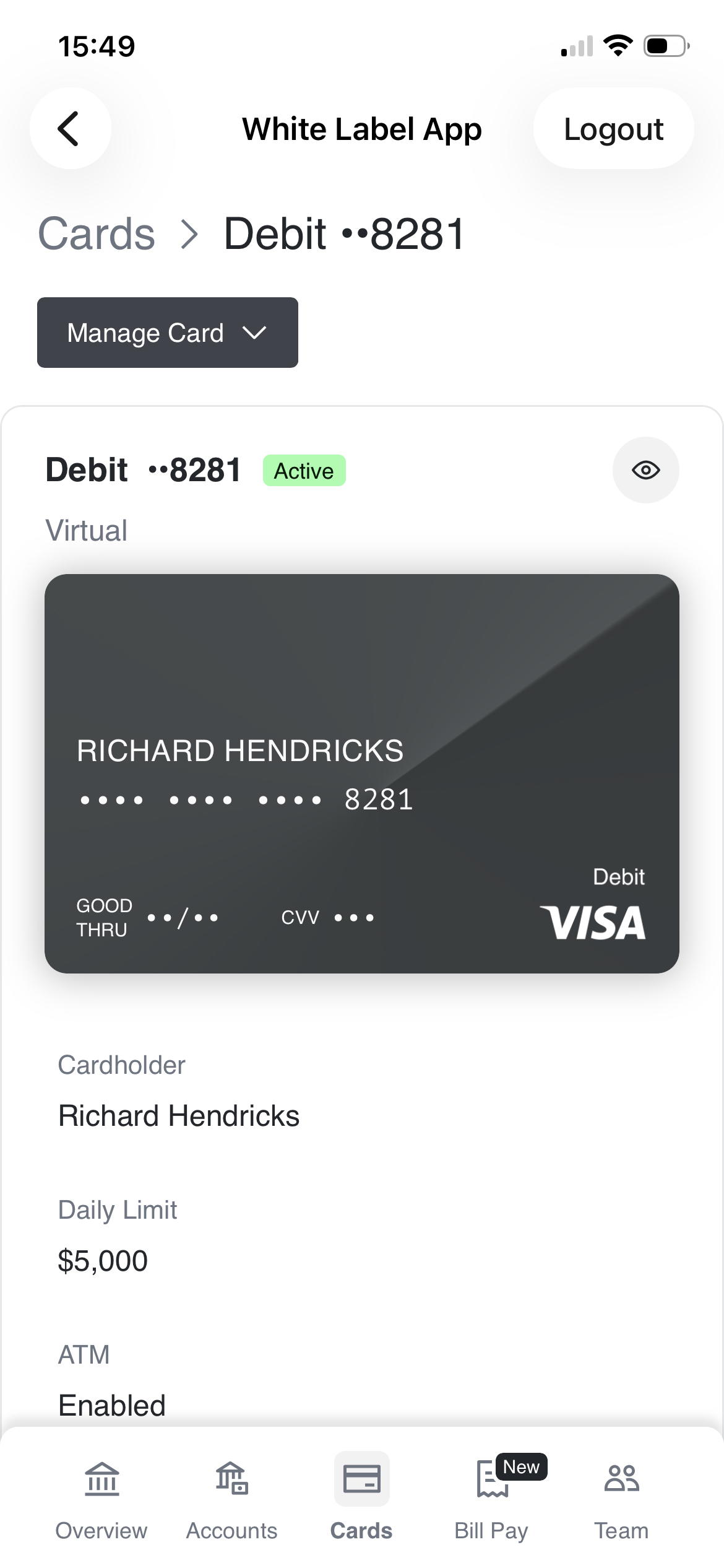 Push-provisioning flows that issue cards directly into Apple Wallet, Google Pay, and Samsung Pay via Visa push provisioning.